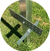 Galvaniseret beslag med rustfrie skruer og bolter, passer til standere på Ø48 - Ø 60 mm rør(som de fleste vejskilte-standere)